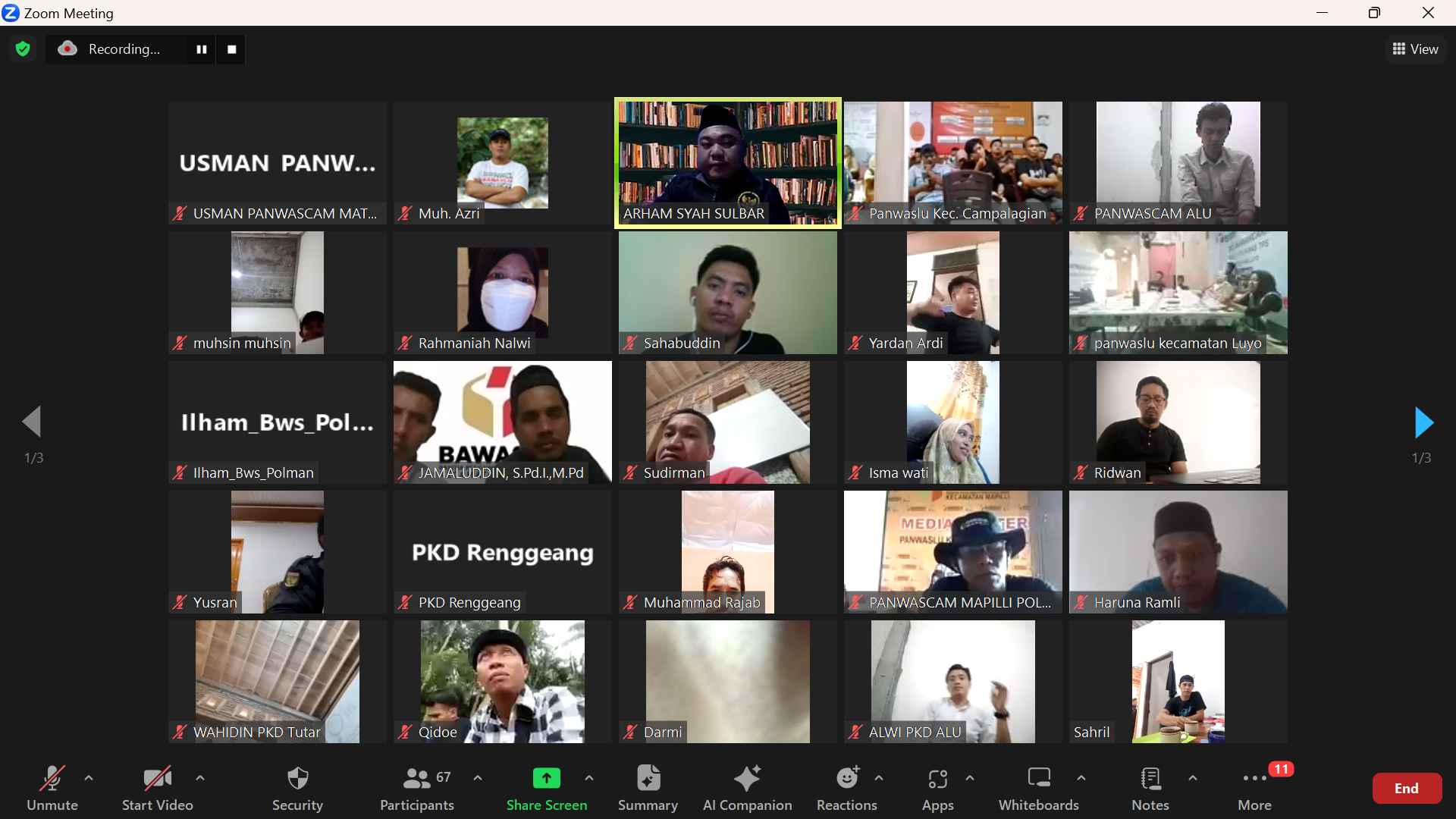 Mamuju,Sulawesi Barat - Anggota Badan Pengawas Pemilihan Umum Provinsi Sulawesi Barat hadir sebagai narasumber pada diskusi bersama Bawaslu Kabupaten Polewali Mandar dan Seluruh Panwaslu Kecamatan serta Pengawas Kelurahan/Desa se-Kabupaten Polewali Mandar secara daring, Sabtu 12 Januari 2024