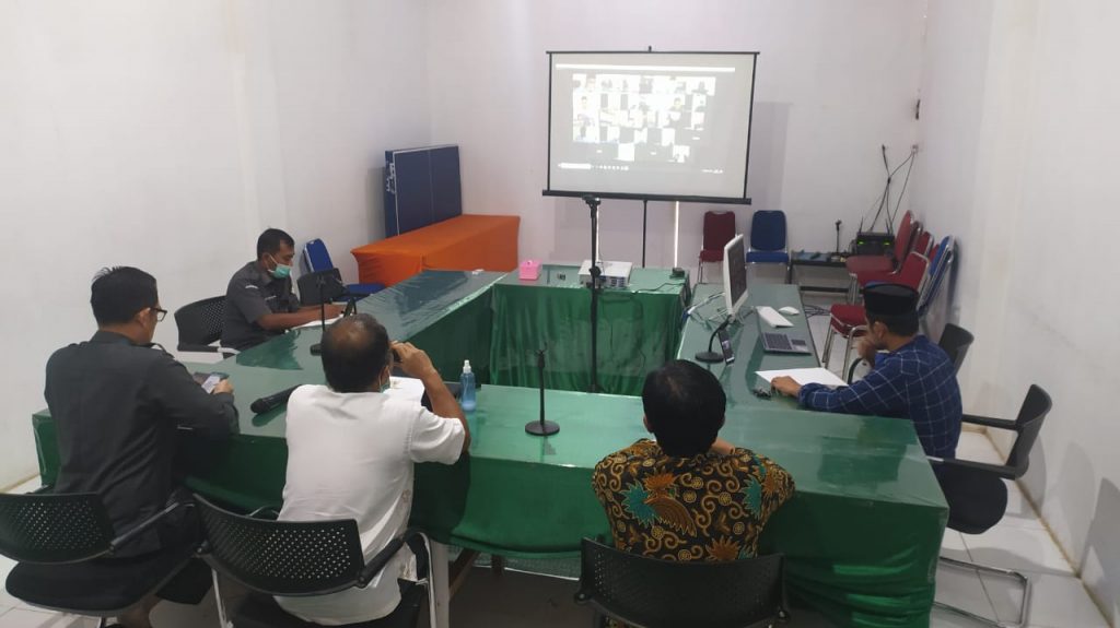 Suasana saat Rapat Dalam Jaringan Bersama Bawaslu Kabupaten Se-Sulawesi Barat di Aula Bawaslu Provinsi Sulawesi Barat, Selasa 5 Mei 2020[/caption]