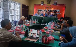PENGAWASAN. Anggota Bawaslu Sulbar, Hamrana Hakim, bersama Ketua Bawaslu Pasangkayu, Ardi Trisandi, serta Kepala Bagian Pengawasan dan Humas, Muhammad Darwis, di Aula Kantor Bawaslu Pasangkayu, Jumat 7 Oktober.