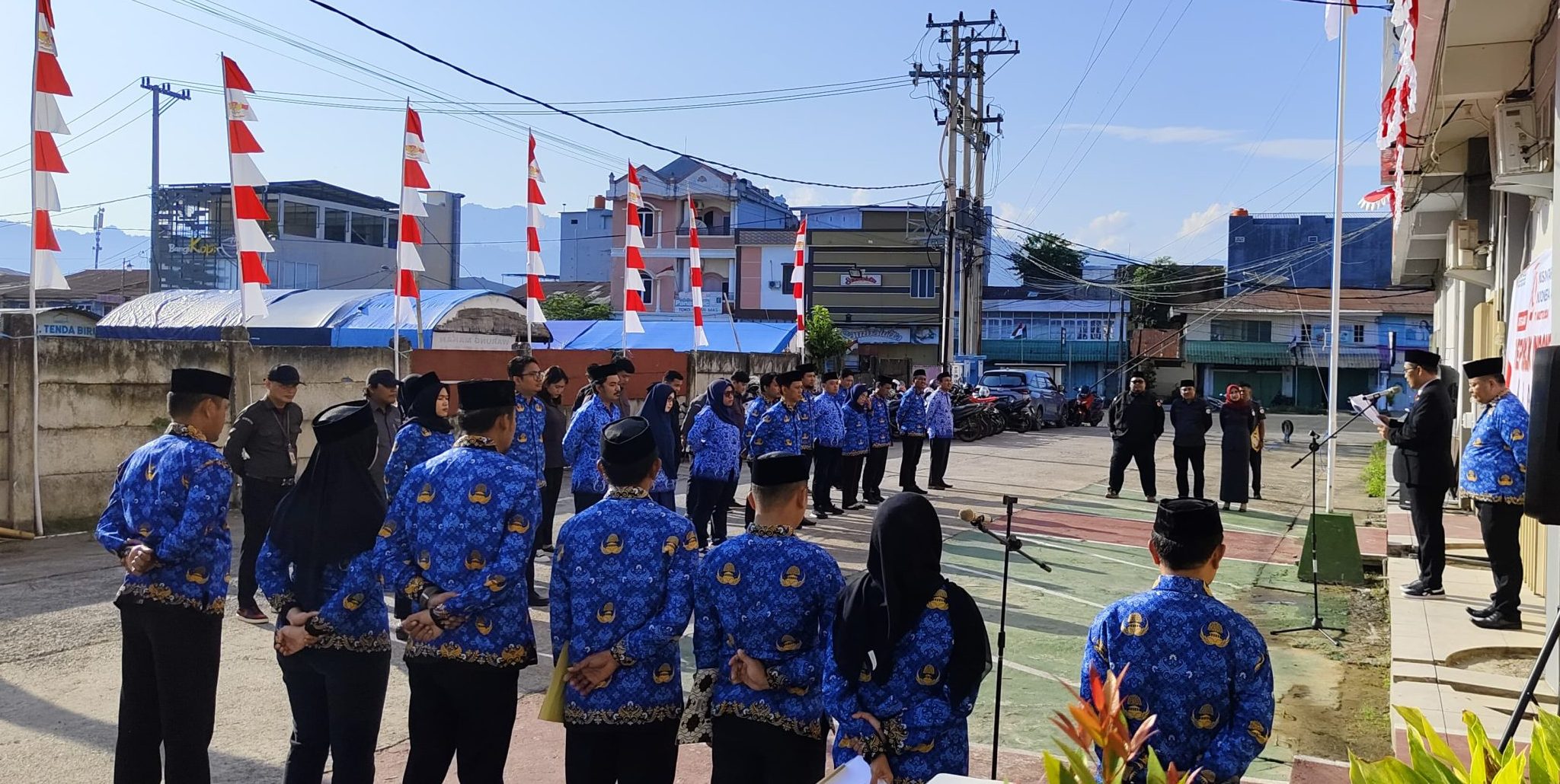 Nasrul Muhayyang selaku Pembina Upacara menyampaikan Tema ini mengandung maksud dan tujuan HUT RI ke 79 bertepan dengan tiga momen penting bagi Negara Indonesia.