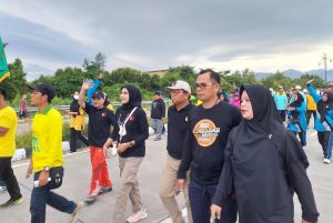 MAMUJU, BAWASLU SULBAR - Ketua dan Anggota serta Kepala Sekretariat Bawaslu Sulbar bersama jajaran Bawaslu Kabupaten turut serta pada kegiatan Jalan Santai Kerukunan dan Deklarasi Damai Umat Beragama yang digelar Kementerian Agama Kantor Wilayah Sulawesi Barat, Sabtu 14 Januari 2023.