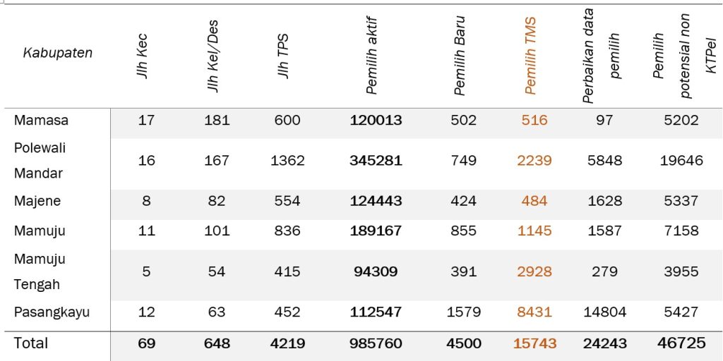 Sumber data : Alat Kerja Pengawasan (Form A3.DP-11) Rekapitulasi DPT Tingkat Provinsi Sulawesi Barat