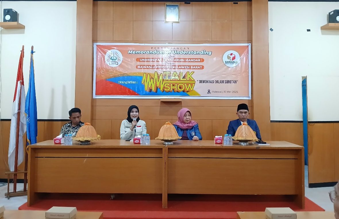 Mamuju, Sulawesi Barat - Dalam rangka penguatan literasi demokrasi dan pengawasan pemilu digital melalui kolaborasi pendidikan, riset, dan pengabdian mahasiswa menuju demokrasi yang berkualitas dan berkelanjutan, Bawaslu Provinsi Sulawesi Barat menandatangani nota kesepahaman dengan Universitas Al Asyariah Mandar (Unasman), Kamis, 15 Mei 2025.