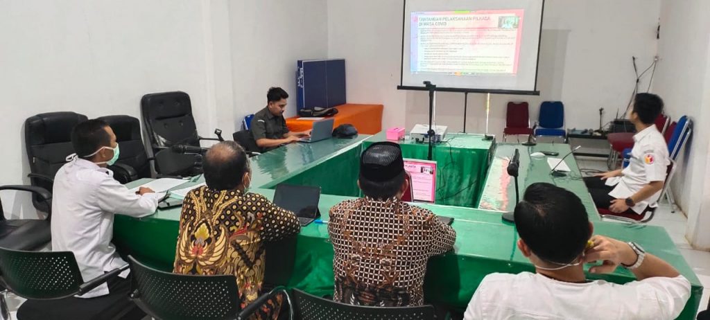 Suasana saat Diskusi Dalam Jaringan di Aula Kantor Bawaslu Provinsi Sulawesi Barat, Rabu 6 Mei 2020[/caption]