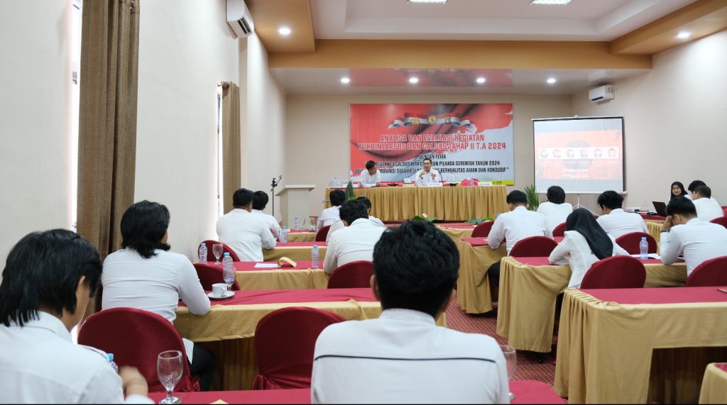 Mamuju, Sulawesi Barat – Ketua Bawaslu Sulbar, Nasrul Muhayyang , menghadiri undangan Polda Sulbar pada kegiatan Anev Galsus kita ciptakan Pilkada Serentak Tahun 2024 di salah satu hotel di Mamuju. Senin 24 Juni 2024.