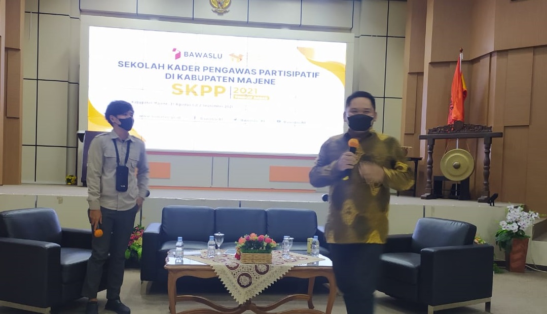 SKPP. Koordinator Nasional Jaringan Pendidikan Pemilih untuk Rakyat (JPPR), Alwan Ola Riantoby saat membawakan seminar Peningkatan Keterlibatan Masyarakat dalam Pengawasan Partisipatif Pemilihan Umum pada pelaksanaan SKPP Tingkat Dasar Gelombang II di Aula LPMP Sulbar, Majene, Selasa, 31 Agustus 2021.