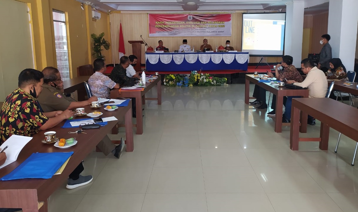 MAMUJU, BAWASLU SULBAR - Ketua Bawaslu Sulbar Sulfan Sulo mengungkapkan tantangan penyelenggaraan Pemilu Serentak Tahun 2024, hal tersebut disampaikan dalam Rapat Pemantauan, Evaluasi dan Pelaporan Perkembangan Politik di Daerah Tahun 2022 yang diselenggarakan Badan Kesbangpol Sulawesi Barat, Jumat 4 Maret 2022.
