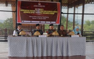 POLEWALI, BAWASLU SULBAR - Ketua dan Anggota Bawaslu Sulbar menghadiri Uji Publik Rancangan Daerah Pemilihan dan Alokasi Kursi Anggota DPRD Provinsi Sulawesi Barat yang digelar KPU Sulbar di Buttu Cipping Tinambung, Polewali Mandar, Selasa 17 Januari 2023.
